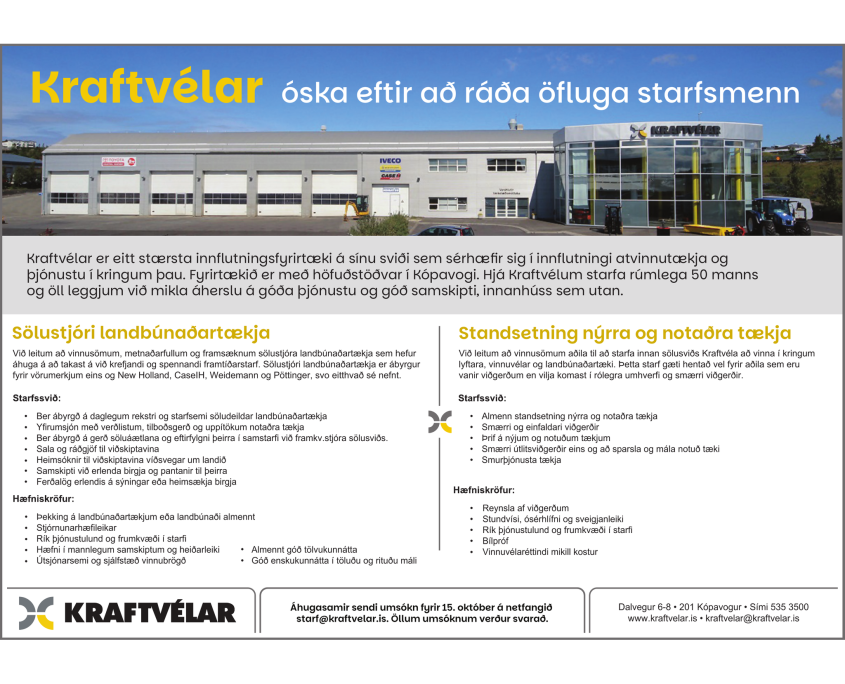 starf@kraftvelar.is. Öllum umsóknum verður svarað.